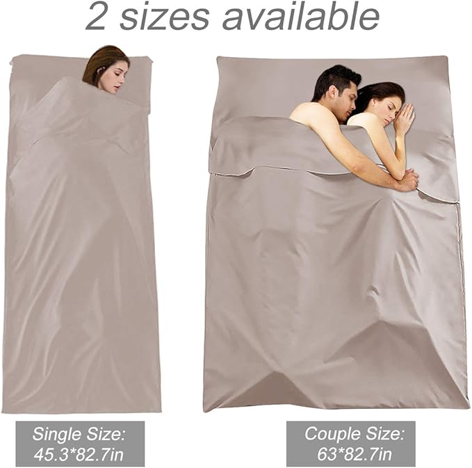- ✅【PERFECT SIZES 】- 45 x 82.7inch(115 x 210cm) fits for single; 63 x 82.7inch(160 x 210cm) fits for strong single people or couples ; 70 x 82.7inch(180 x 210cm) fits for double. All size are large enough to stretch arms and legs. This Lightweight Portable Sleeping Bag Liner and Camping Sheet can be fold down in a about 8.3 X8.3 inch pocket for easy carry and saving pace in your backpack.