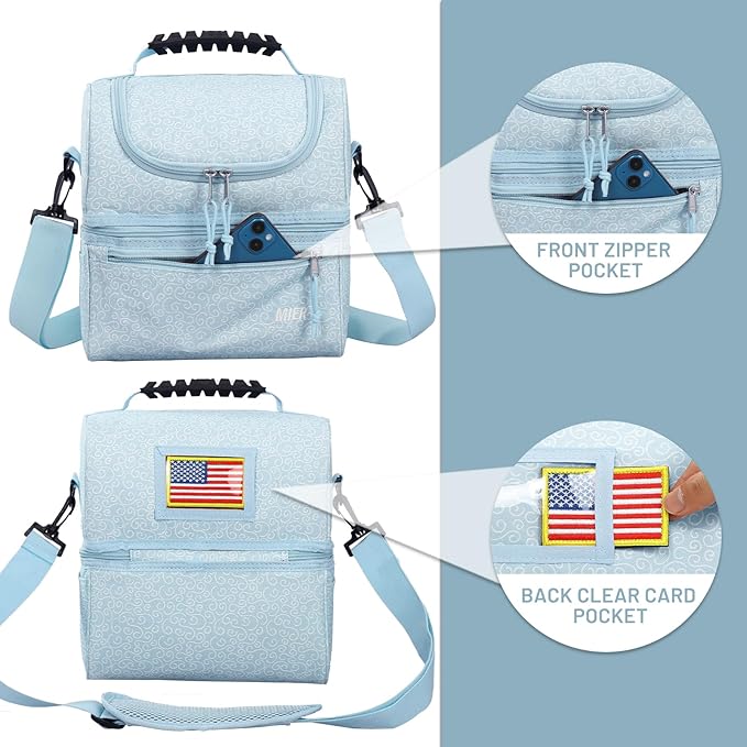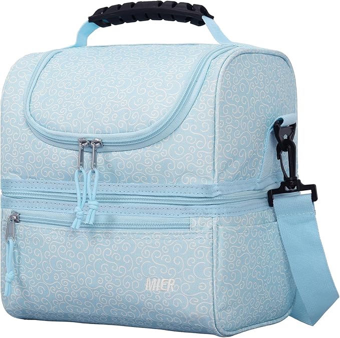 MIER Adult Lunch Box Insulated Lunch Bag Large Cooler Tote Bag for Men Women to Work Travel Daytrip, Double Deck Cooler (Blue Floral, Large)