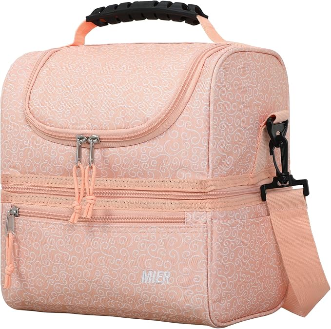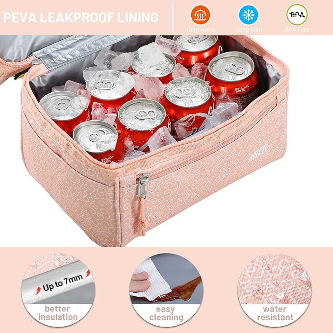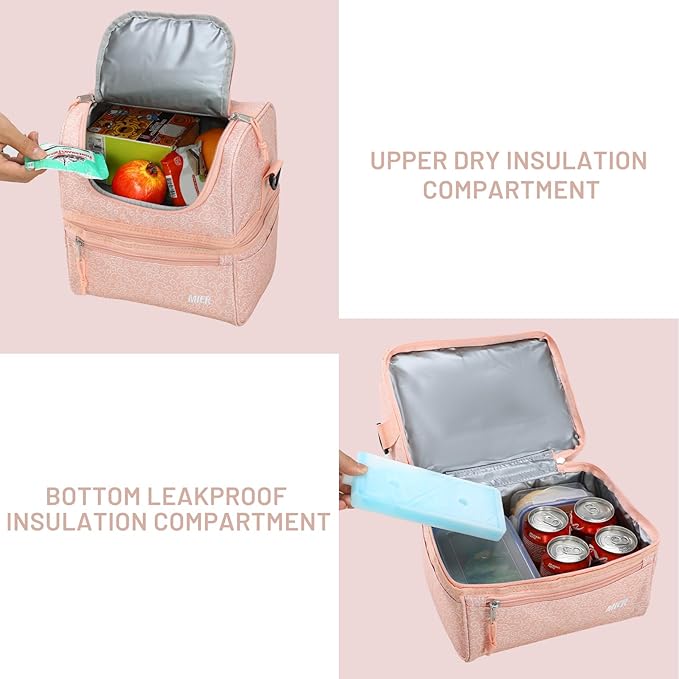 MIER Adult Lunch Box Insulated Lunch Bag Large Cooler Tote Bag for Men Women to Work Travel Daytrip, Double Deck Cooler (Pink Floral, Large)