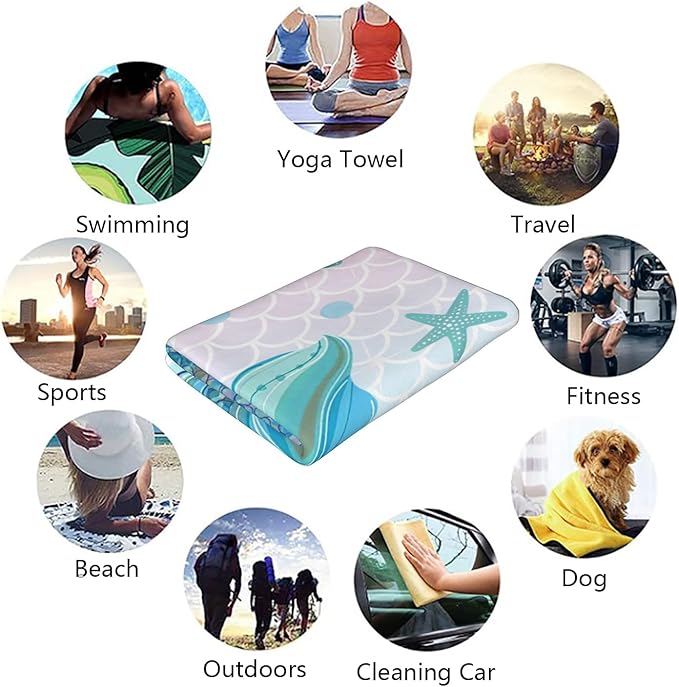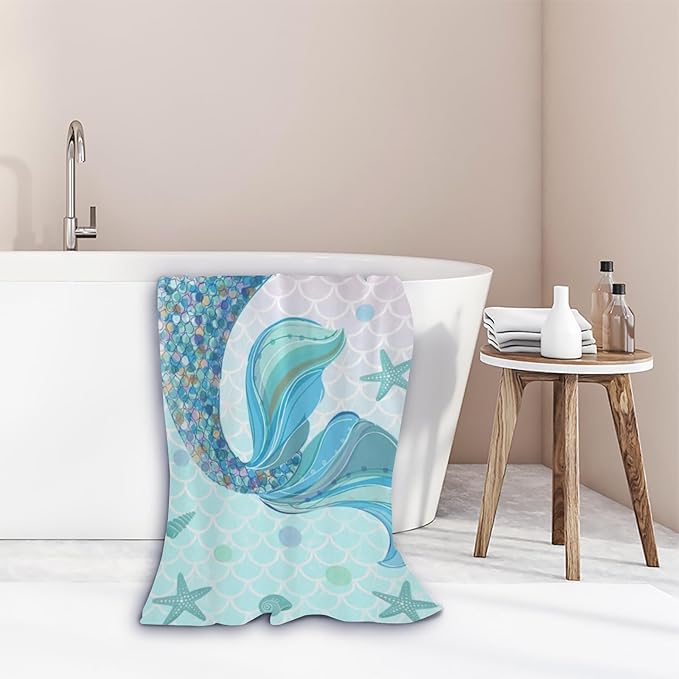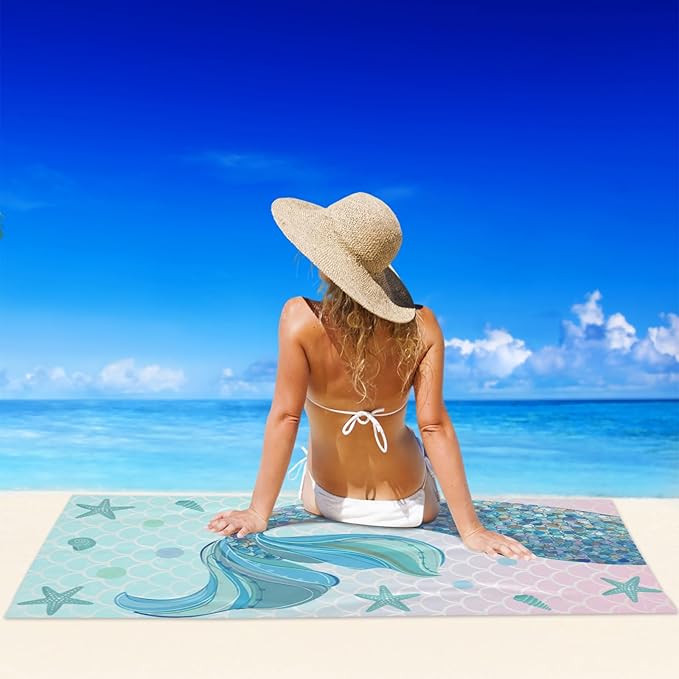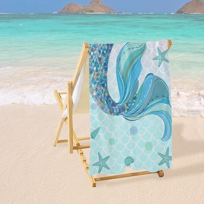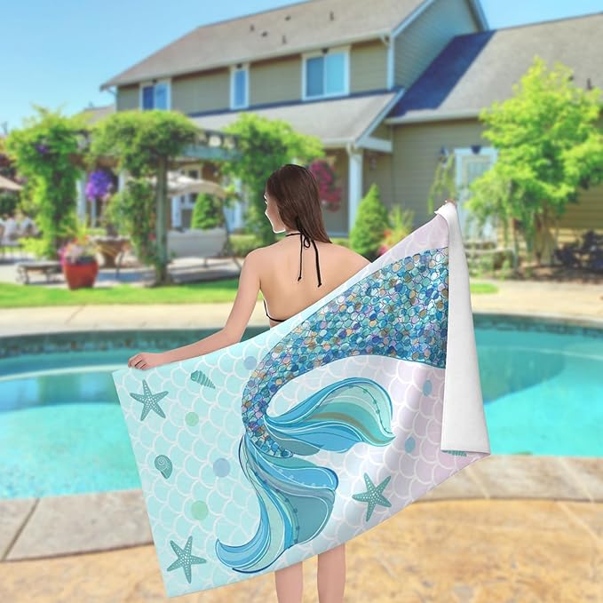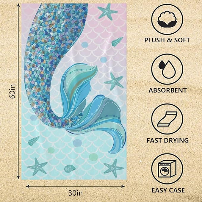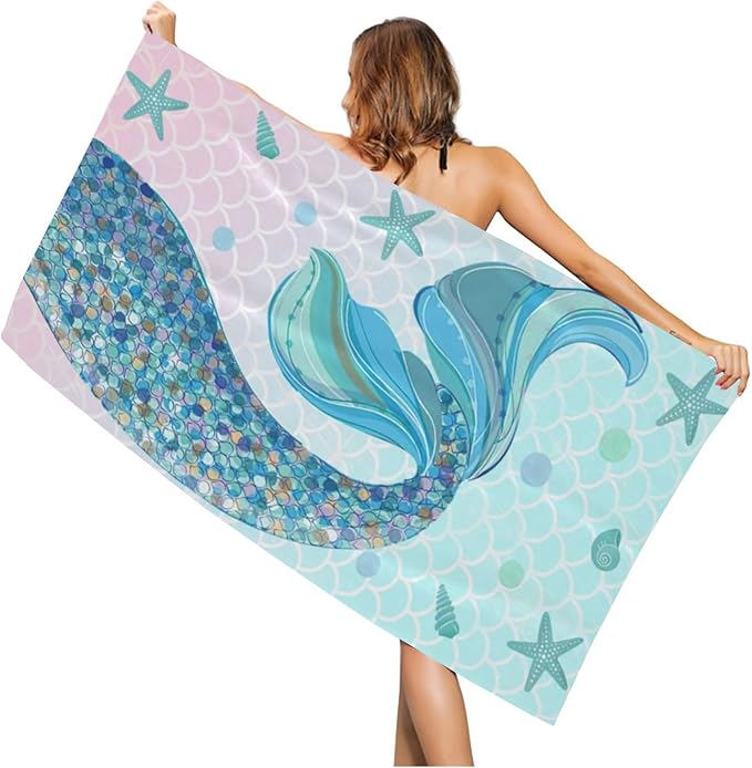 Mermaid Beach Towel, Cute Quick Dry Thin Mermaid Tail Absorbent Bath Towel for Girls & Womens, Kids Fantasy Summer Lightweight Beach Blanket for Travel Pool Yoga Sports 30 x 60 in