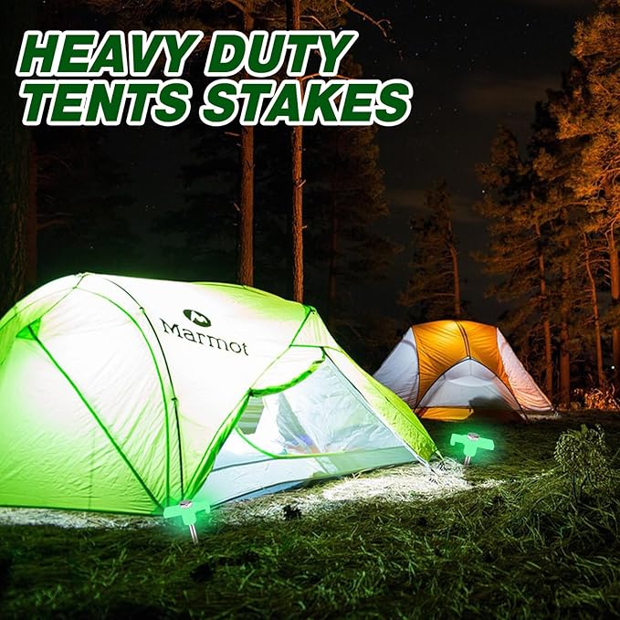 - Quality Material: our ground stakes are mainly made of carbon steel and plastic, strong and reusable, rust proof, not easy to bend, and can serve you for a long time; The tent pegs have threaded ends, easy to insert, and hold up well when drilled into various hard soils; They have nice grip and the tops of the stakes conveniently glow in the dark, so you can use them with confidence
