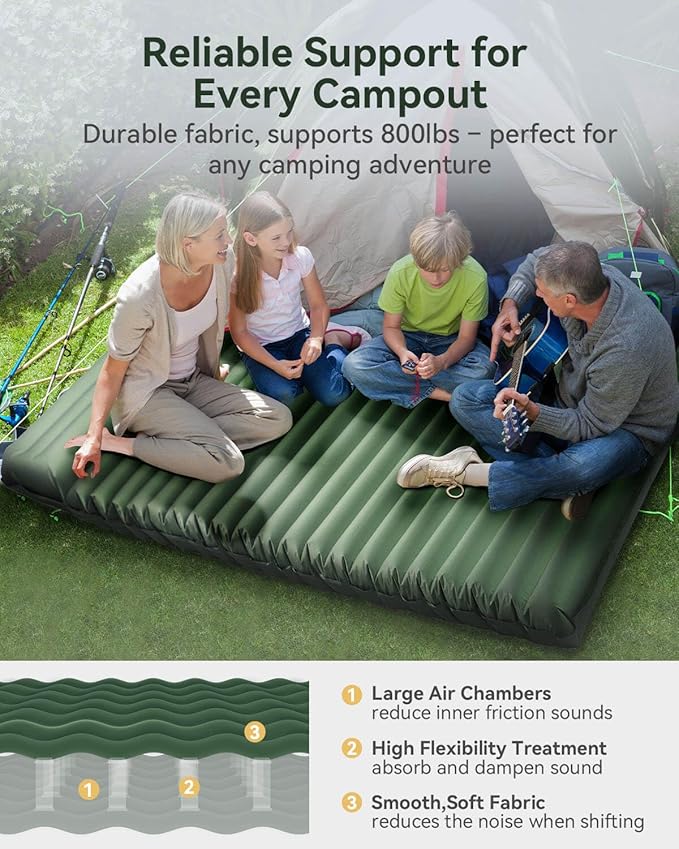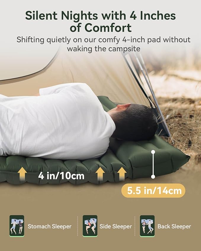 - Your Reliable Camping Companion: This inflatable sleeping pad features an unique I-beam air chamber design, reduces weight while providing multi-directional support for consistent stability and comfort. The outdoor-grade wear-resistant fabric can withstand up to 800 lbs, which can easily elevates your whole body off the ground, ensuring you a sound sleep in outdoors.