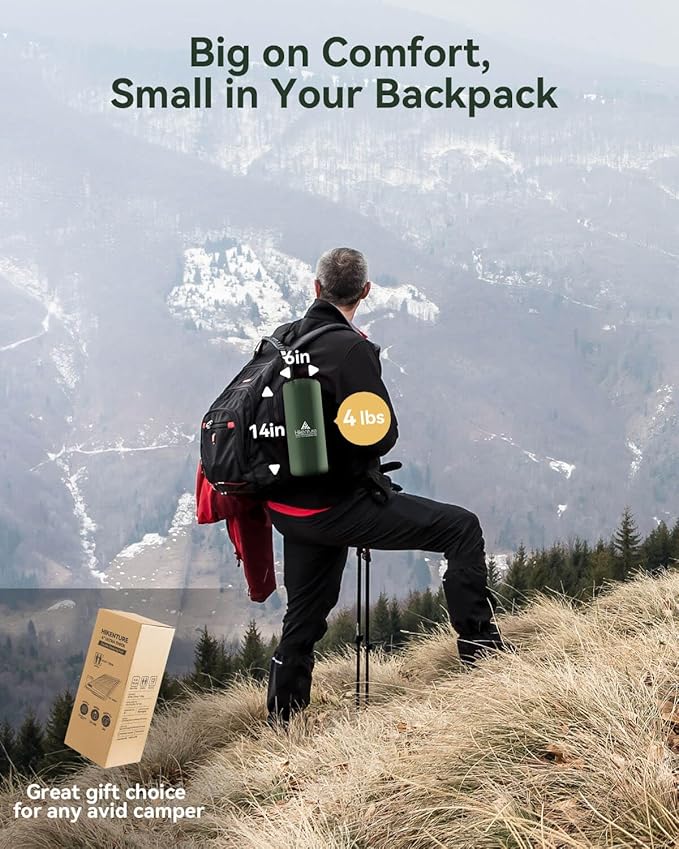 - Big on Comfort, Small in Your Backpack : Perfect for camping, hiking, backpacking, this sleeping pad is ready for anything. With a built-in ergonomic pillow contours to your neck, this pad will providing a bed-like comfort, so you can enjoy more time outdoor with family and friends.