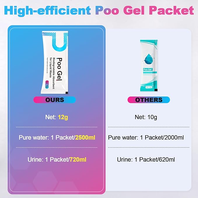 - 20/60 Packets Toilet Gel: The box is included 20/60 portable poo gel sticks(12g of each). All of them are individual packaging in compact size, make you easy to carry for every outdoor recreation
