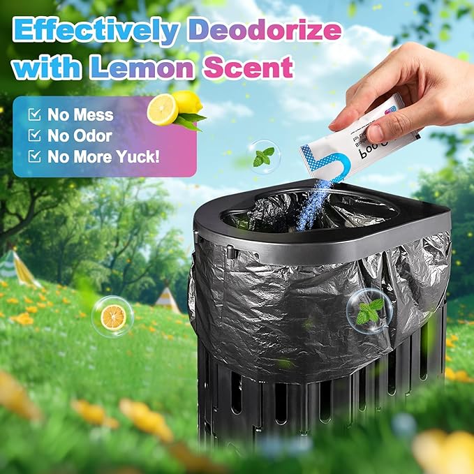 - Pleasant Scent: Quickly absorbs urine. Our camping toilet powder is featured with Lemon Fragrance, effectively neutralize odor during gelling