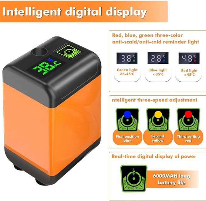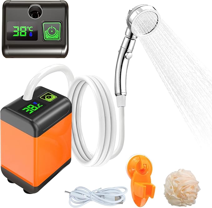 Portable Camping Shower, Camping Shower Pump, 3 Flow Modes, 6000mAh Battery-Powered, Smart Digital Display Intelligent Temperature Measurement, Suitable for Hiking, Traveling, Laundry, Pet Bath