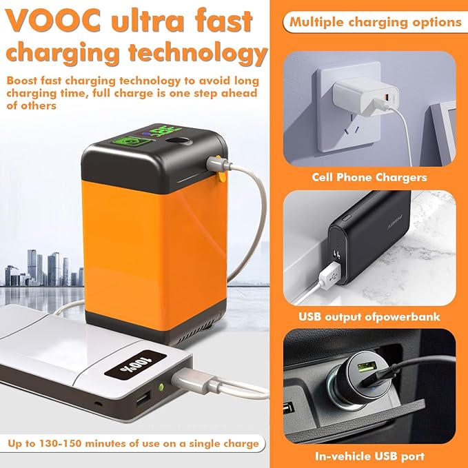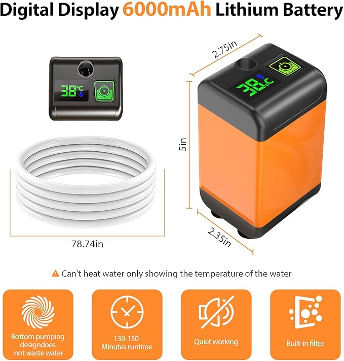 - 【Upgraded 6000mAh Battery】The portable showerhead is equipped with a 6000 mAh high-capacity lithium battery for faster charging and longer battery life, which can be energized continuously for 130-150 minutes; it can be charged by a cell phone charger (5V 0.5-2A), a laptop's USB output or a car's USB output.