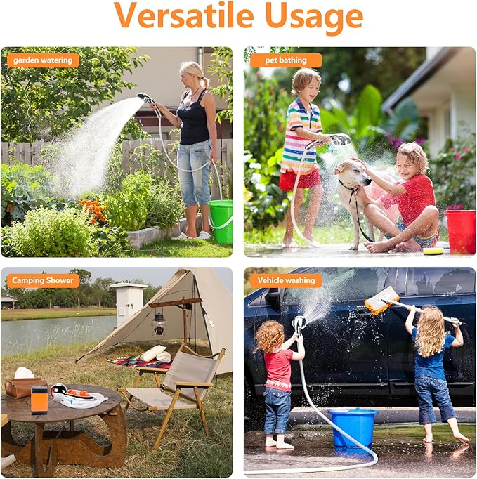 - 【Multipurpose Portable Shower】 The portable shower pump is perfect for camping, hiking, beach, pet bath, car washing, planting, bathroom and more indoor outdoor use. It's also a perfect gift for your loved ones.