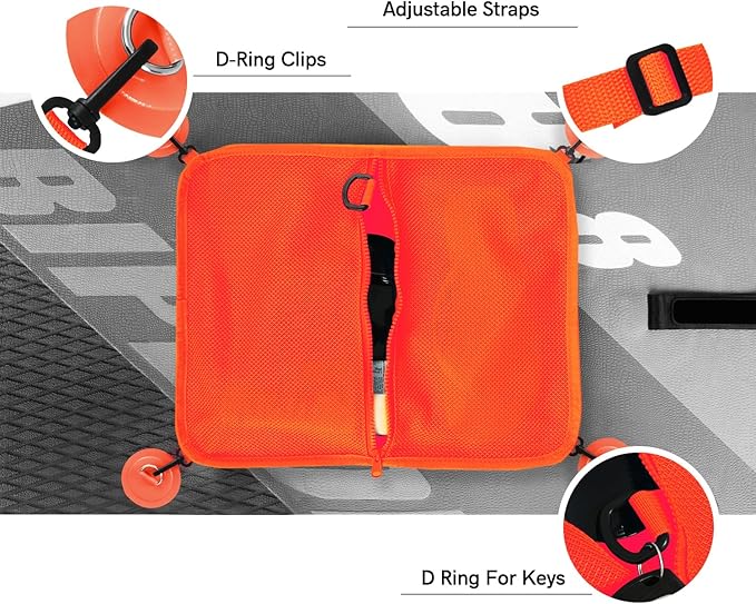 - Durable and Stable: The SUP deck bag is made of 900D Oxford and mesh. This sup Accessories Mesh Storage Deck Bag is durable enough for any paddling adventure. Come with a waterproof phone case to keep your essentials like your phone dry. Please check and test the phone case before you using it.If any problem, contact with us directly.