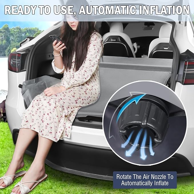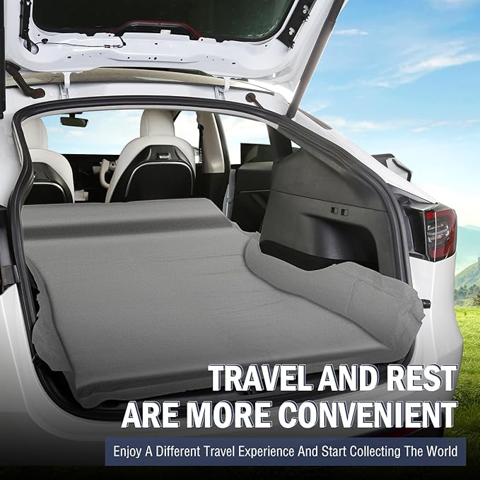 Self Inflating Sleeping Pad for Tesla Model Y 2024-2020 Memory Foam Portable Camping Mattress Car Camping Mattress Bed for Model Y Chamois Surface for All Season