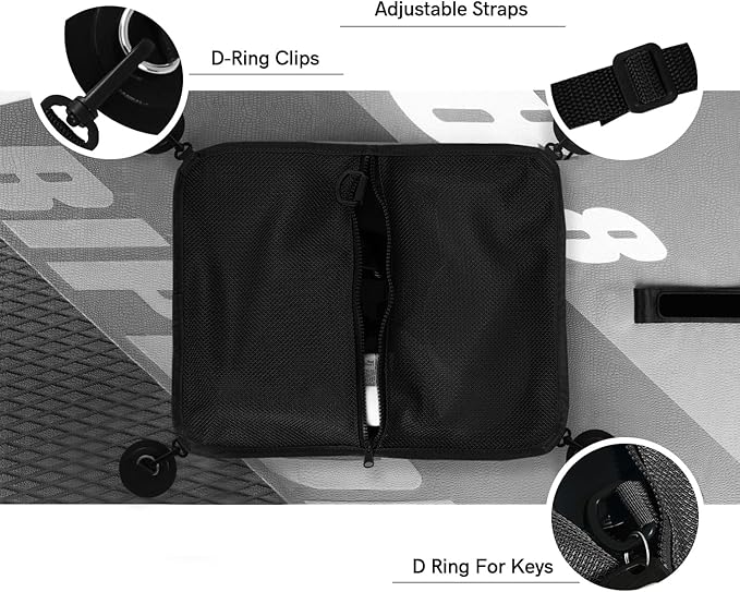 - Enough Storage Space: The paddle board deck Bag is large enough for phone, sandals, water bottles, sunscreen,snacks and sunglasses and so on, Paddle board Mesh Storage Bag size is 11.8”*14.8”. Especially design with 3 separate elastic mesh pockets inside for fixing small gear and a hook for keys.