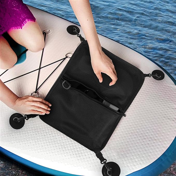 - Durable and Stable: The SUP deck bag is made of 900D Oxford and mesh. This sup Accessories Mesh Storage Deck Bag is durable enough for any paddling adventure. Come with a waterproof phone case to keep your essentials like your phone dry. Please check and test the phone case before you using it.If any problem, contact with us directly.