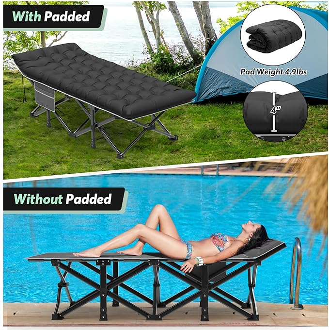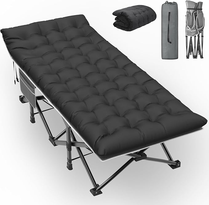 - 【Cot Full Size】Cot measures 79 x 32 x 19 inches when unfolded, providing an extra 5 inches in length, 4 inches in width, and 4 inches in height compared to regular folding cot beds. Experience the luxury of a peaceful night's sleep with the maximum comfort designed into this extra-large outdoor camping bed.