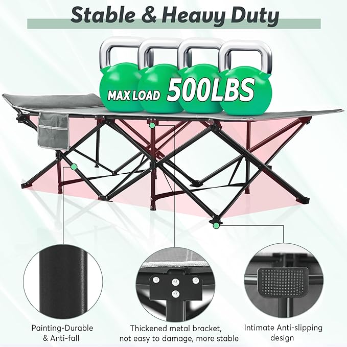 - 【Durable and Long-lasting】The upgraded version of the cot bed is made of double layer 600D Oxford cloth, designed with 10 tubular iron legs and 25mm thick square tubes to provide stability, featuring superb strength, supporting a max capacity of 500 pounds.