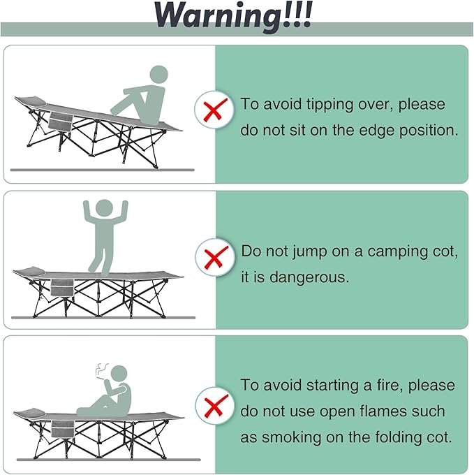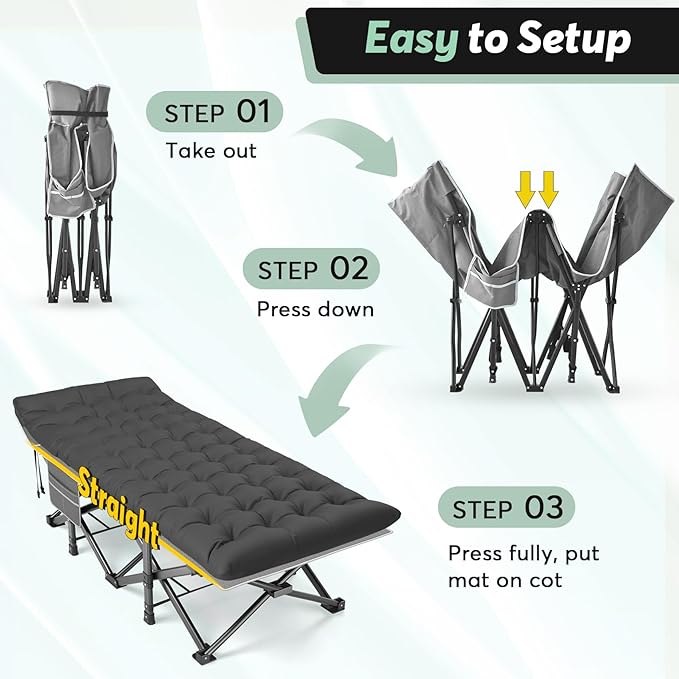 - 【Portable & Folding】Camping cots offer the convenience of easy portability, allowing you to set up a comfortable sleeping space anywhere you go, lightweight(23.3 lbs), foldable, come with Oxford bag for hassle-free transportation. Say goodbye to uncomfortable sleeping arrangements on the ground.