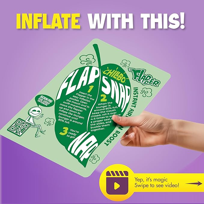 - Effortless Setup with Flapper Technology: Dive into relaxation mode in seconds with Chillbo's inflatable lounger air sofa 'Flapper' inflation system. Experience the ease: insert the Flapper, make a few flaps, and voilà—your cozy inflatable lounge chair is ready.