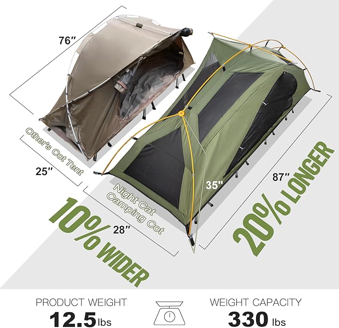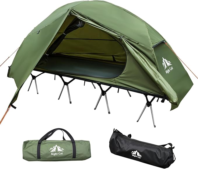 Night Cat Camping Cot Tent for 1 Person Off Ground Elevated Tent Cot Foldable Camping Sleeping Bed with Rainfly Waterproof Green
