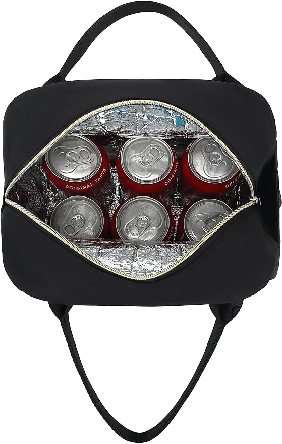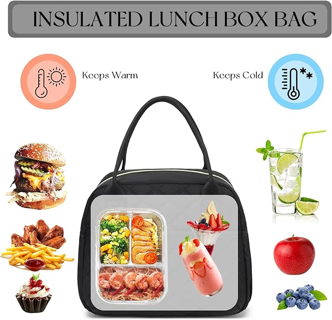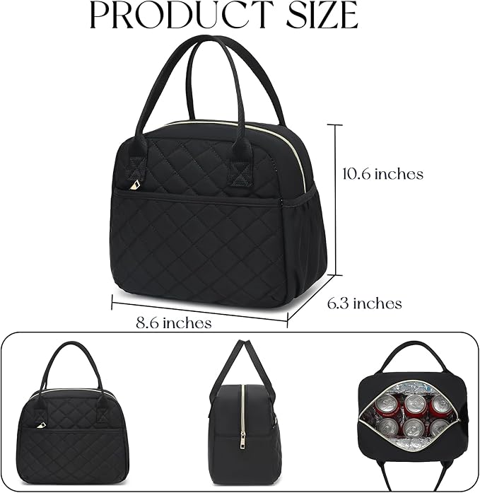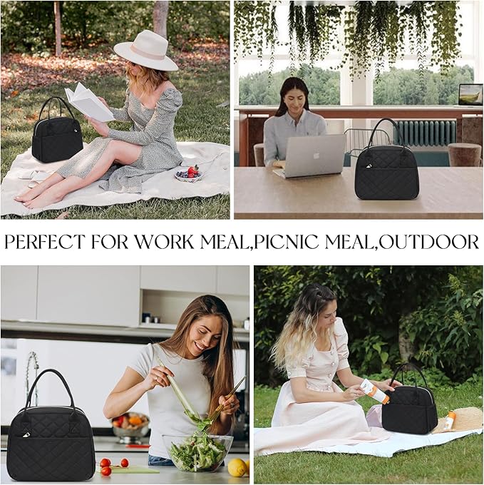 CAMTOP Lunch Box for Women Insulated Lunch Bag Lunchbox Cooler Thermal Leakproof Quilted Reusable Lunch Tote Bag for Work School Travel Picnic (Black)