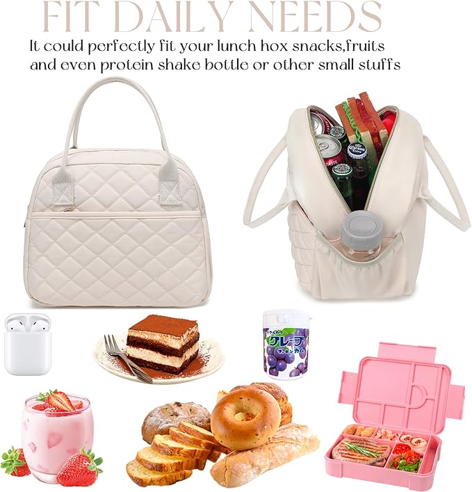 - 【FASHION ITEMS】The front of this lunchbox is designed with quilted. Simple and elegant design is a great item to pair with different clothes every day. It can blends in with your attire and isn’t too flashy or tacky. This bag looks good with purse and briefcase.