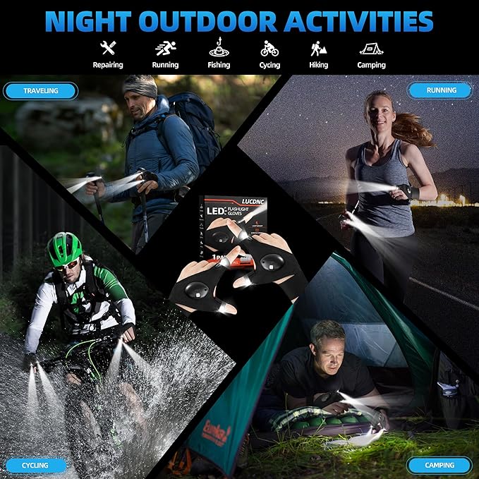 - 【Mens Gifts Ideas】As a Christmas stocking stuffer gift,Dad birthday gift,Father's Day gift,Valentine'S Day gift ,Thanksgiving gift,Halloween party gift, Christmas gift,New Year gift,anniversary gifts,LED Flashlight Glove is a very good choice for you.Can free your hands in the dark and provide lighting in small spaces.A good helper for your outdoor activities at night.LED flashlight glove can also be used as lighting props to be the "sparkling person" at dance bar parties and other occasions