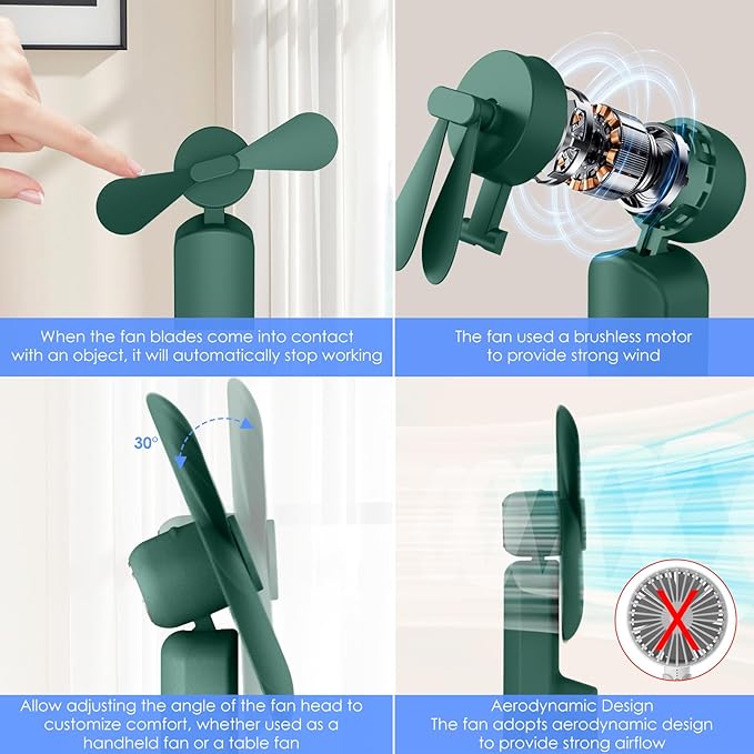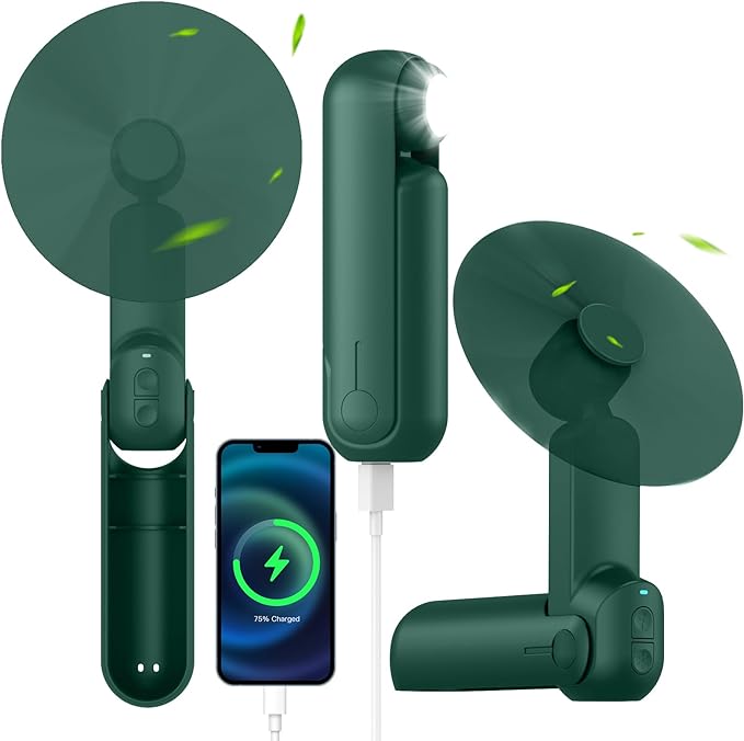 4 IN 1 Portable Handheld Fan,Personal Foldable Cooling Fan, Mini Pocket Fan,Desk Fan,Hand Fan,Flashlight,Power Bank,Table Lamp,Camping Travel Beach Fan, Birthday Gifts for Women Men(Dark Green)
