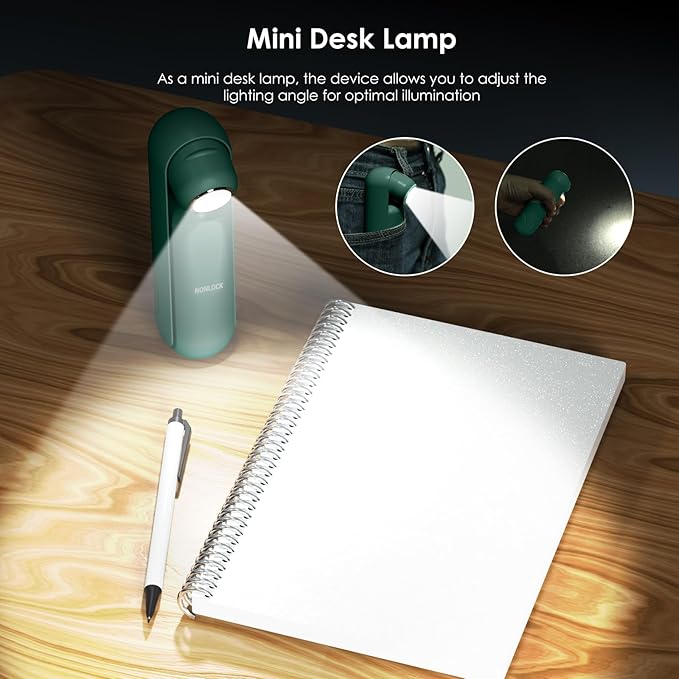 - 【Multifunctional】It's a handheld fan when it unfolded 180°,small table fan or battery operated mini desk lamp when it unfolded 270°,It has a separate flashlight switch button, which can use the flashlight function in both folding or working states,It comes with a 2000mAh rechargeable battery and 5V/1A USB output port, whether in a folded state or working, it can all be used as power bank.