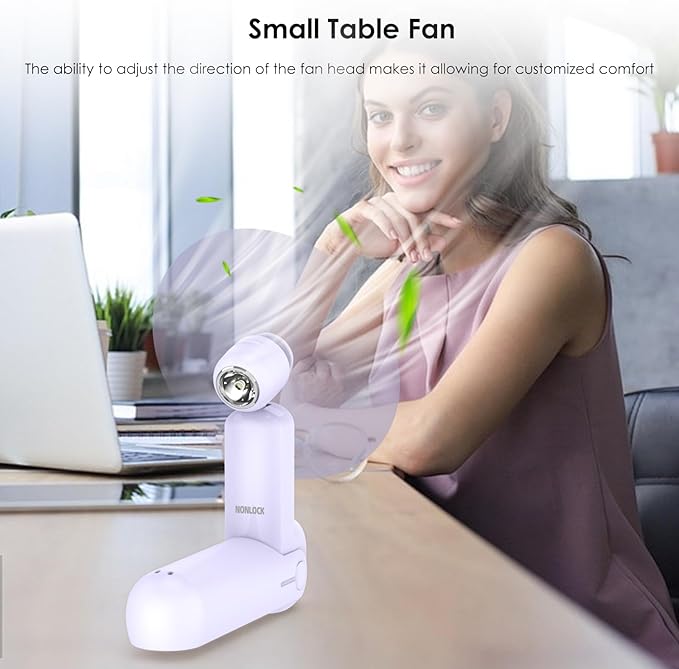 - 【Adjustable direction of wind】Whether you are using it as a handheld fan or a mini desktop fan, the angle of the fan head can be adjusted upwards. When you use it as a desktop fan, adjust the angle of the fan head upwards to allow strong winds to blow onto your face. When you use it as a handheld fan, you don't need to hold your hands high, just adjust the angle of the fan head upwards and let the strong wind blow onto your face, which will make you more comfortable to use.
