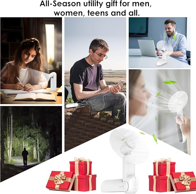 - 【Cool and unique gift】Gifts for people who have everything.This This 4 in 1 multifunctional handheld fan is the best birthday gift,it is also a great Christmas stocking stuffing gifts,perfect for thanksgiving, valentines day,mothers day,fathers day,graduation,anniversary,it's the best gifts for women,men,mom,dad, teens, grandpa,grandma, son, husband, boyfriend. It is practical for everyone, utility gifts for all-season.