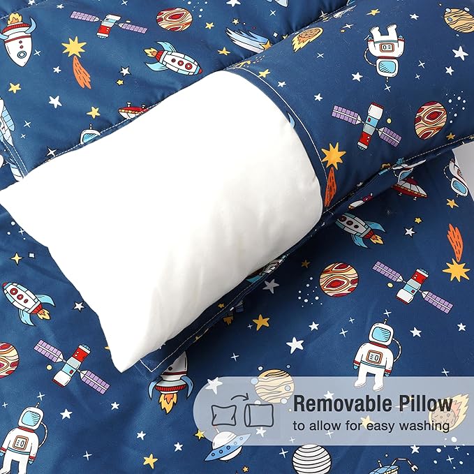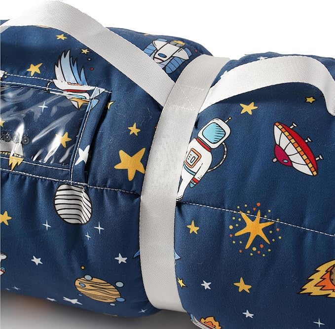 - COMFORTABLE AND WARM: Each lightweight toddler sleeping bag consists of a built-in floor mat, a warm attached blanket, and a pillow - all comprised of a soft cotton and polyester blend that is sure to be gentle on your little one's sensitive skin.