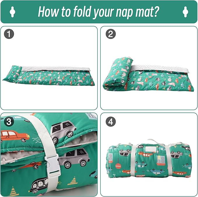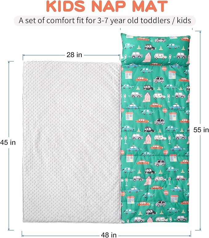 - PERFECT GIFT SET: With a roll-type and foldable storage design, this toddler nap mat with pillow becomes an essential companion for daycare, kindergarten and preschool. This nap mat is also suitable for family outings, camping trips, picnics, and more, ensuring convenience and style wherever the adventure takes them.