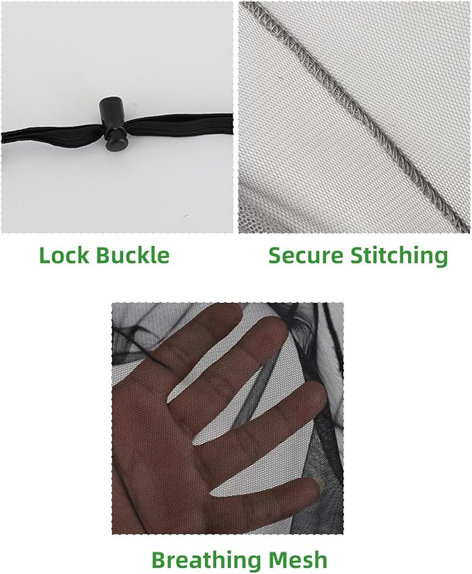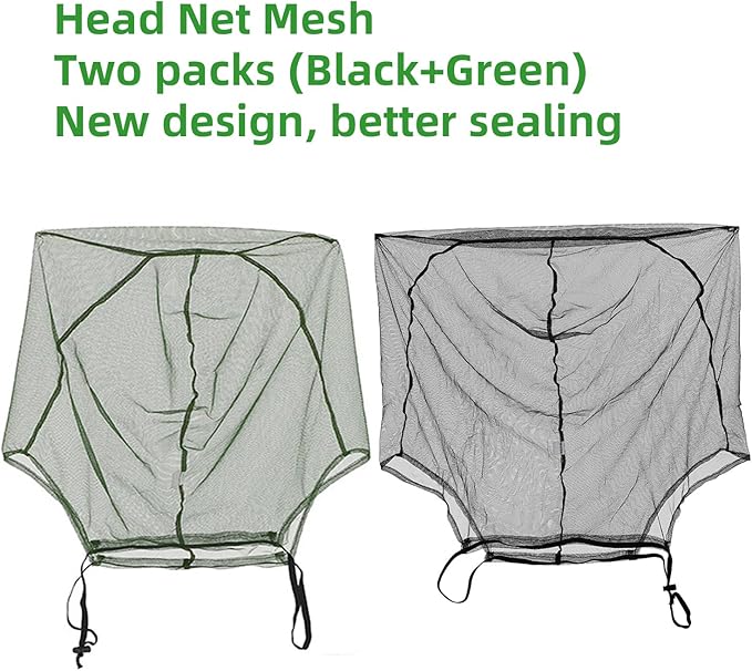 2 Packs Mosquito Head Net Mesh, Bug Net for Head Better Sealing Face Neck Mask Suitable for All Seasons (Black)
