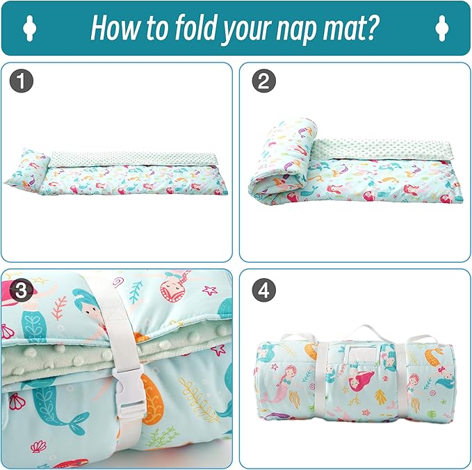 - PERFECT GIFT SET: With a roll-type and foldable storage design, this toddler nap mat with pillow becomes an essential companion for daycare, kindergarten and preschool. This nap mat is also suitable for family outings, camping trips, picnics, and more, ensuring convenience and style wherever the adventure takes them.