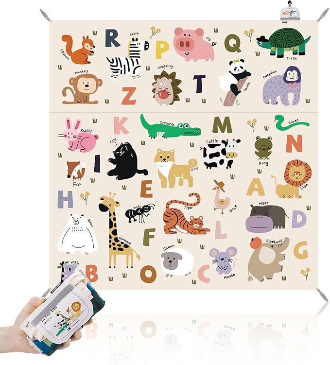 HIKEMAN Pocket Picnic Blanket Beach Blanket - Mini Waterproof Camping Blanket,Lightweight Outdoor Blanket with Hand Strap for Picnics Beach Hiking Camping Travel (Animal Type, L)