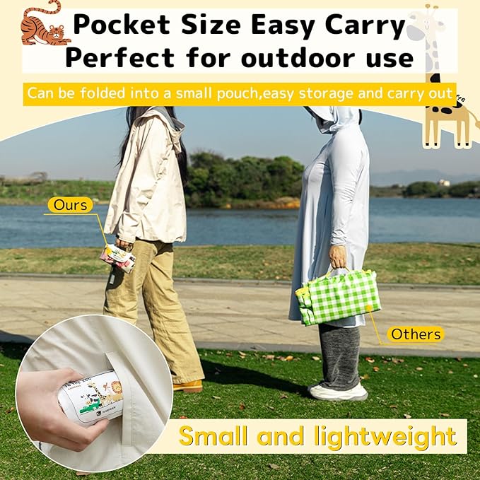 - 【Durable】:Pocket Picnic Blanket is made of 210T polyester plaid fabric,extended four corners,tear resistant.