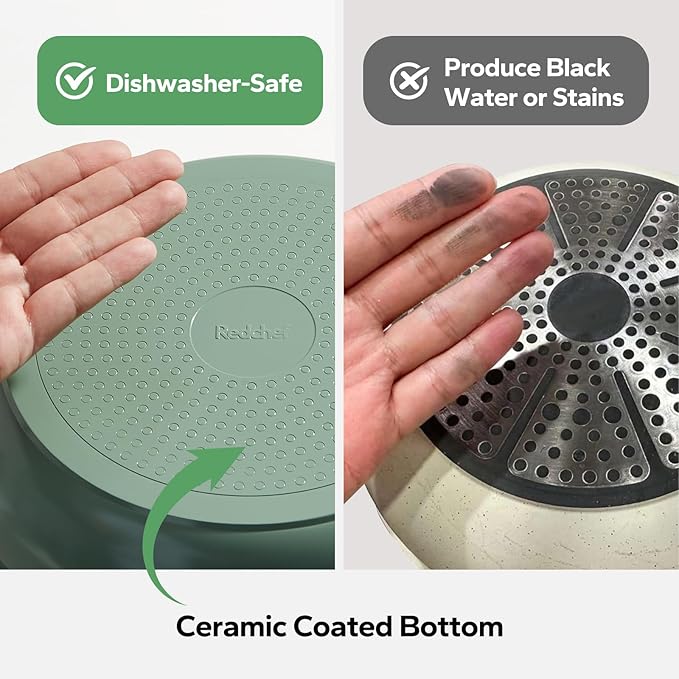 - Natural Ceramic Coating: Made of natural ceramic, our Redchef kitchen ceramic cookware set is no Teflon and no PFAS, PTFE, PFOA, lead, or cadmium
