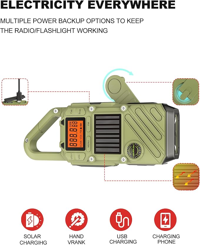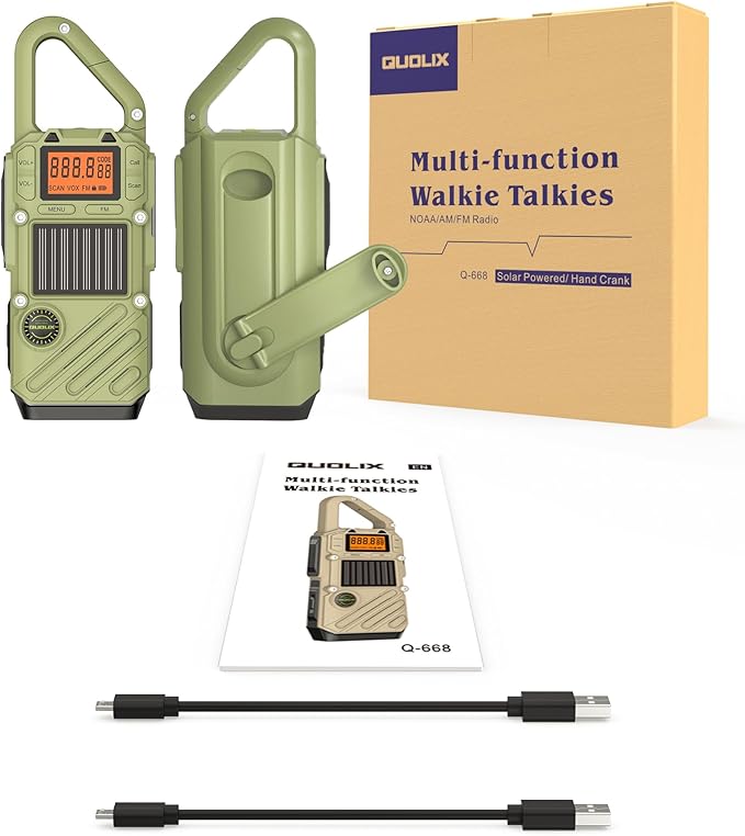 Rechargeable Adult Walkie Talkie with Emergency Solar Hand Crank Charging with FM/NOAA,Weather Alert,LED Flashlight-USB Charging and SOS Siren Long Range 2-Way Radio