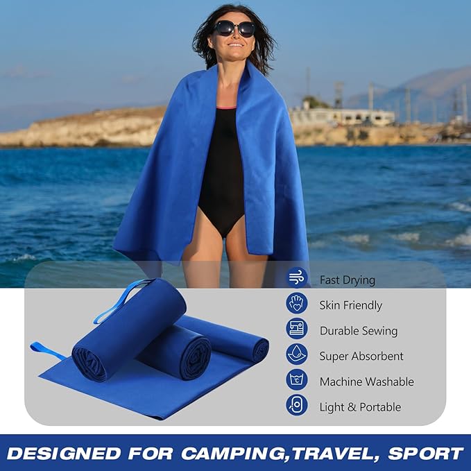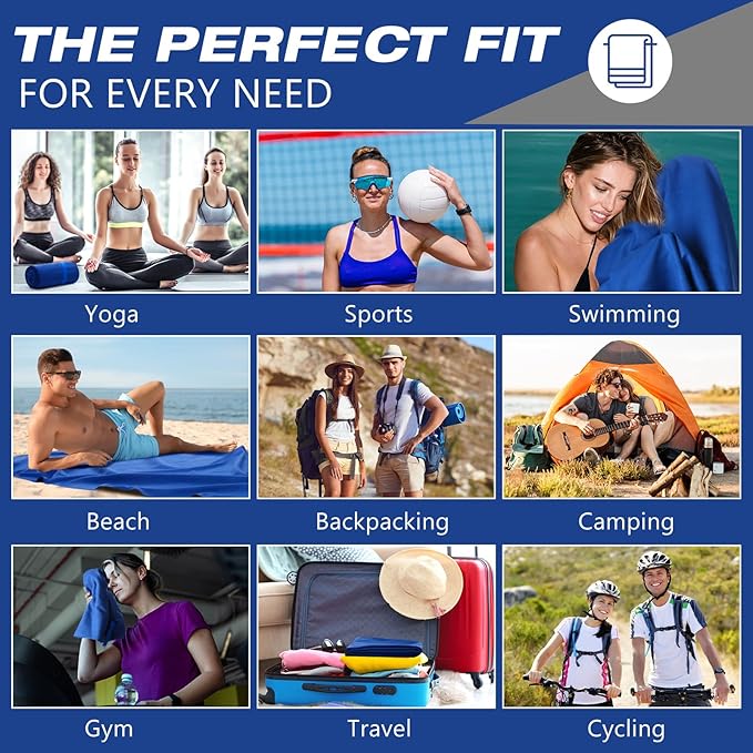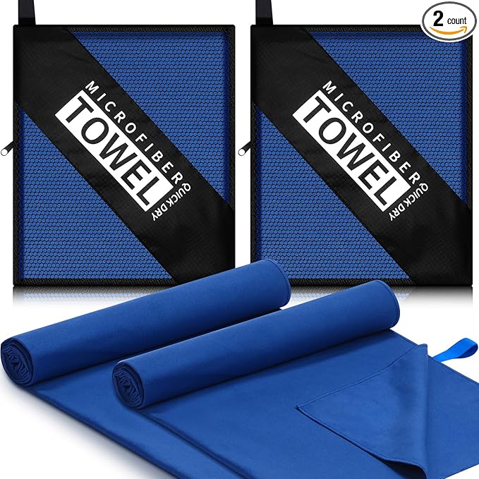 - Lightweight and Easy to Carry: each compact travel towel set comes with a breathable carrying bag and elastic band, practical and easy to hang anywhere and dry; Although the camping towel made of microfiber cloth is large in size, it is thin and compact and can be rolled up and stored when not in use, making it easy to store and carry; This compact travel towel fits nicely in your gym bag and takes up virtually no space when you're traveling and playing at the beach