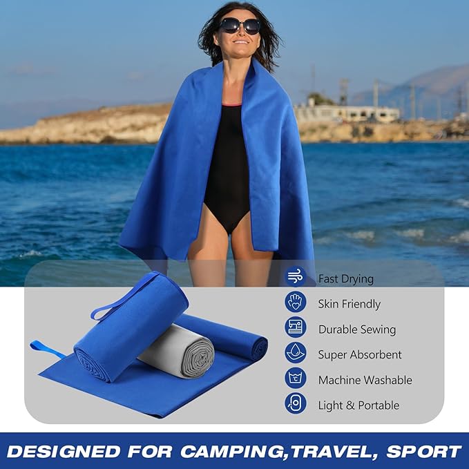 - Lightweight and Easy to Carry: each compact travel towel set comes with a breathable carrying bag and elastic band, practical and easy to hang anywhere and dry; Although the camping towel made of microfiber cloth is large in size, it is thin and compact and can be rolled up and stored when not in use, making it easy to store and carry; This compact travel towel fits nicely in your gym bag and takes up virtually no space when you're traveling and playing at the beach