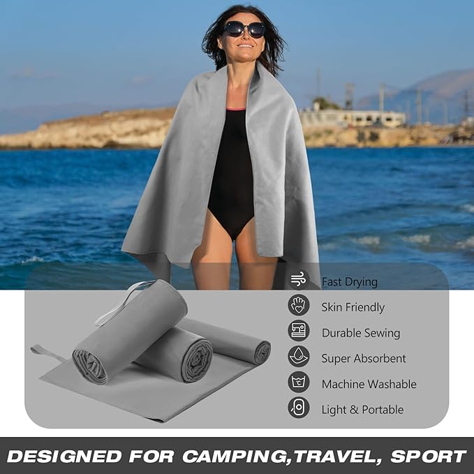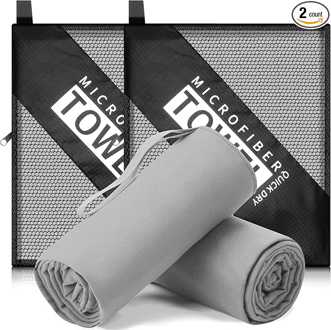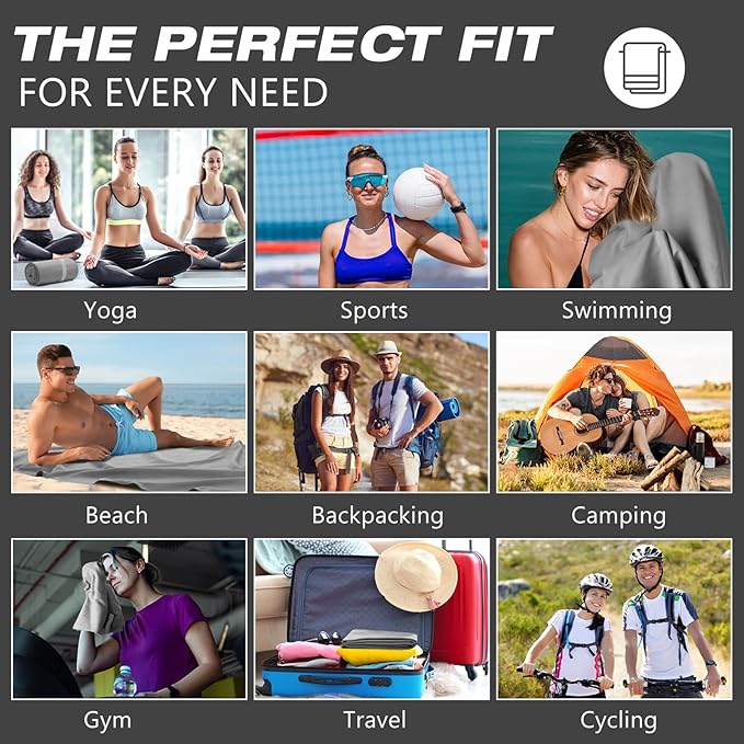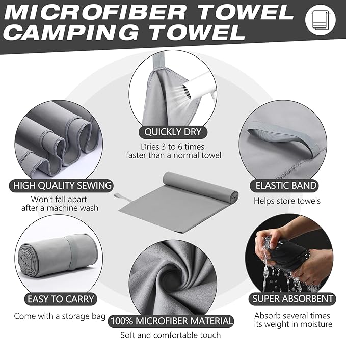 - Lightweight and Easy to Carry: each compact travel towel set comes with a breathable carrying bag and elastic band, practical and easy to hang anywhere and dry; Although the camping towel made of microfiber cloth is large in size, it is thin and compact and can be rolled up and stored when not in use, making it easy to store and carry; This compact travel towel fits nicely in your gym bag and takes up virtually no space when you're traveling and playing at the beach