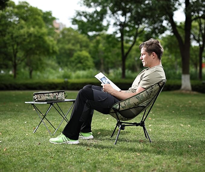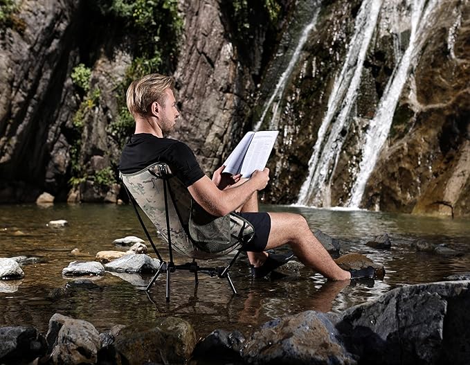 - Ultralight & Compact: Frame is made of aircraft-grade aluminum alloy, ultralight yet highly capable, weighing just 2.7 pounds. It folds up into its own carry case that only takes up about 1/3 the space of regular camp chairs and can fit in a backpack or attach to a day pack, making it easy to carry with you at all times. Ideal for outdoor activities where space and weight are limited.