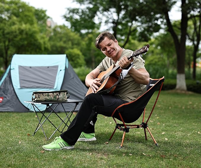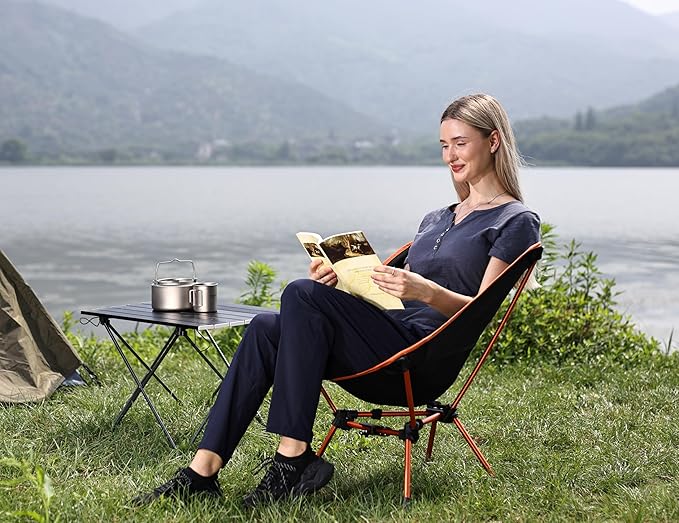 - Ultralight & Compact: Frame is made of aircraft-grade aluminum alloy, ultralight yet highly capable, weighing just 2.7 pounds. It folds up into its own carry case that only takes up about 1/3 the space of regular camp chairs and can fit in a backpack or attach to a day pack, making it easy to carry with you at all times. Ideal for outdoor activities where space and weight are limited.