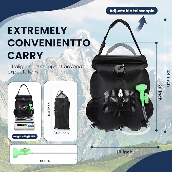 - Widely Used: This compact and lightweight camping shower bag is designed for convenience on the go. Ideal for outdoor camping, travel, hiking, backpacking, pet cleaning, plant watering, fishing, hunting, beach trips, and more. Elevate your outdoor experiences with refreshing camping shower wherever you are.