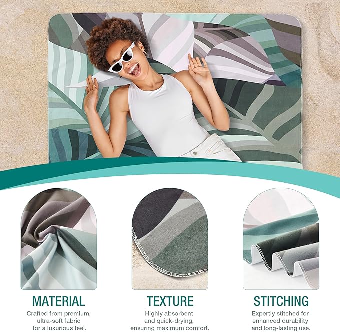 - Quick-Drying Performance: Bid farewell to soggy, musty towels. Made from ultra-absorbent microfiber, our towels dry two to three times faster than standard cotton towels. Whether you're soaking up the sun or taking a refreshing dip, our towels will keep you dry and comfortable throughout the day. Feel the luxurious softness against your skin as the towel swiftly absorbs moisture, leaving you feeling fresh and dry in no time