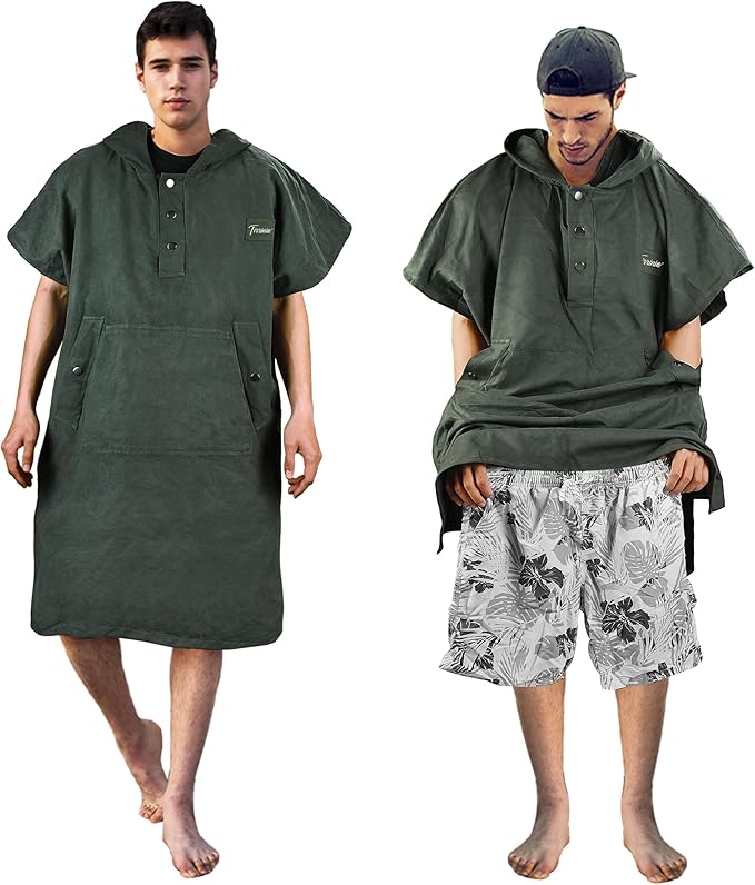 - Premium Fabric: Engineered with excellence, our changing robe is fabricated using a superior 200 GMS superfine fiber blend consisting. This high-quality composition ensures that the towel robe is not only water absorbent, swiftly soaking up moisture, but also quick-dry, allowing you to transition from water activities to leisure moments with ease. Its breathability keeps you comfortable, while its sand-resistance, and convenience of being machine washable exemplify our dedication to delivering
