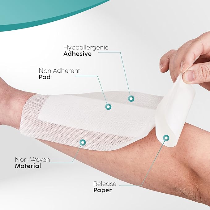 - 【Superior Comfort】 4"*10" Extra large bandages for wounds provide unparalleled comfort with a soft, non-stick, highly absorbent pad and adhesive breathable borders, ensuring painless changes and no skin irritation.
