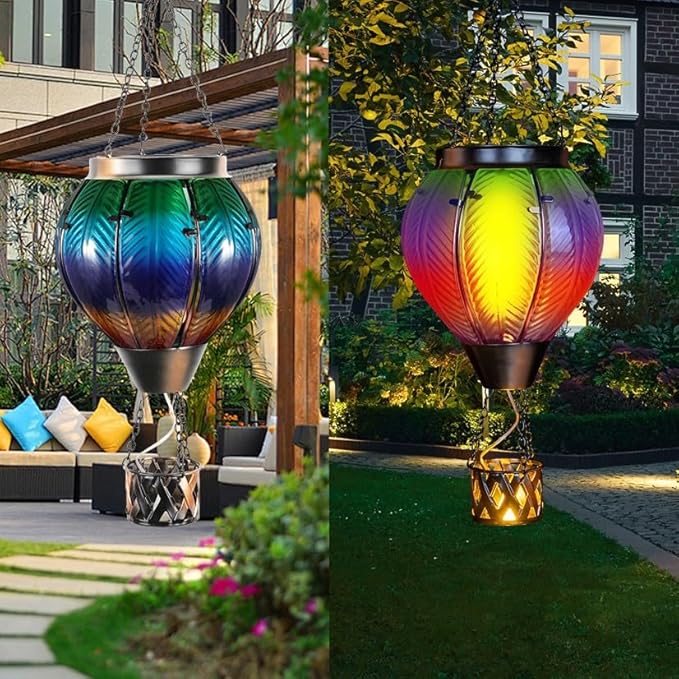 - Wide Application:Solar hot air balloon hanging garden light with metal "S" hooks can be easily hung anywhere, such as balconies,porches,ledges or trees.adding a cozy and romantic atmosphere to your home at night.