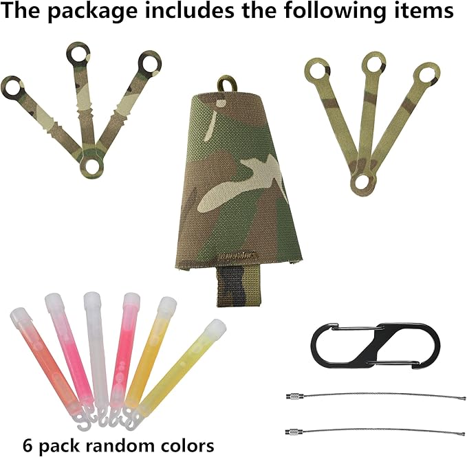 - 【Easy Organization of Chem Light Pouch】: The chem lights keeper includes 6pcs chem lights(random color),one Carabiner Clip,2 keychain cables and six pull tabs,featuring two different variations (smooth and serrated)