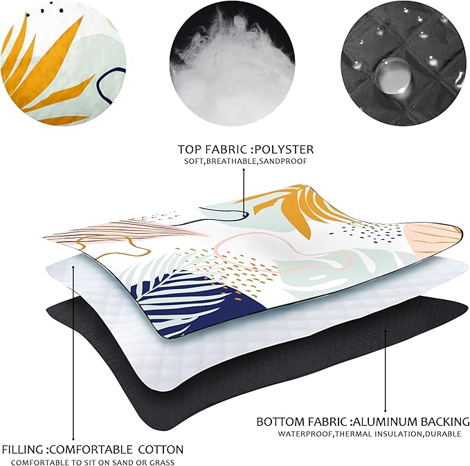 • 【Double-Side Waterproof & Sand Free】Sand free Oxford on picnic blankets backing, shake off sand easily, also can prevent the ground from being wet or the beach from being wet when lay down. the top adopted waterproof polyester in the top to prevent sprinkled drinking from wetting the surface.