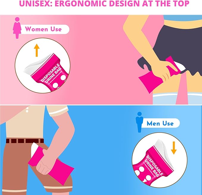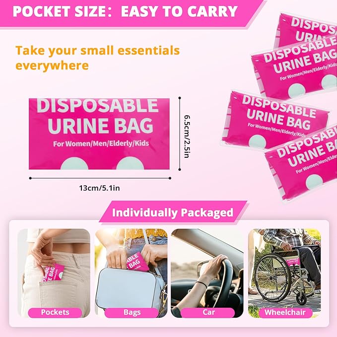 - Emergency Urination to All: Designed for both male and female (adults, children, and the elderly), our disposable travel urinal bags provide convenient relief during emergencies. With reliable sealing to prevent leaks, perfect urinal device for kids, patients and pregnant women during travels or traffic jam.Remember to securely seal the bag after use for safety and hygiene