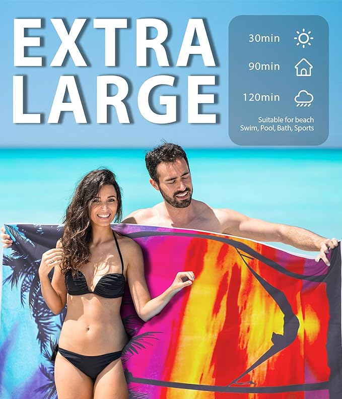 - ☀️[ Microfiber Lightweight ] High quality microfiber that absorbs water much faster than ordinary fabric! Eco-friendly, no faded and no smell. You can easily take it portable to avoid wet and cold on the beach. Perfect size for adults or kids.